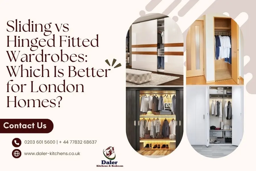 As a leading bedroom and kitchen remodeling company in London, Daler Kitchens helps homeowners choose fitted wardrobes that enhance both functionality and aesthetics. In this guide, we compare sliding and hinged wardrobes to help you decide which option best fits your lifestyle, space, and budget.
